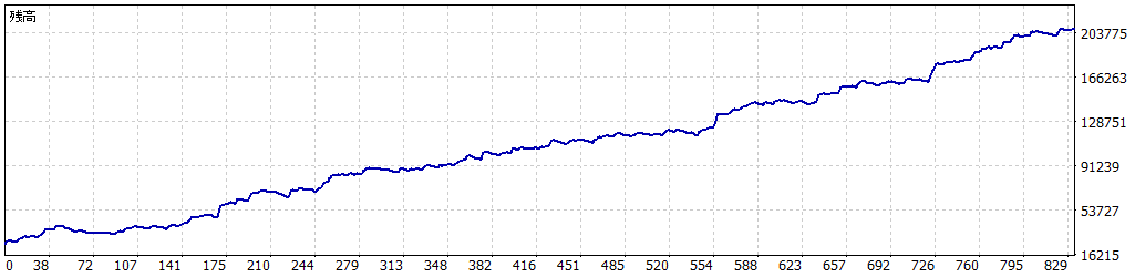 | 総損益: | 1 823 562 | 残高絶対ドローダウン: | 0 | 証拠金絶対ドローダウン: | 3 300 | |||||||