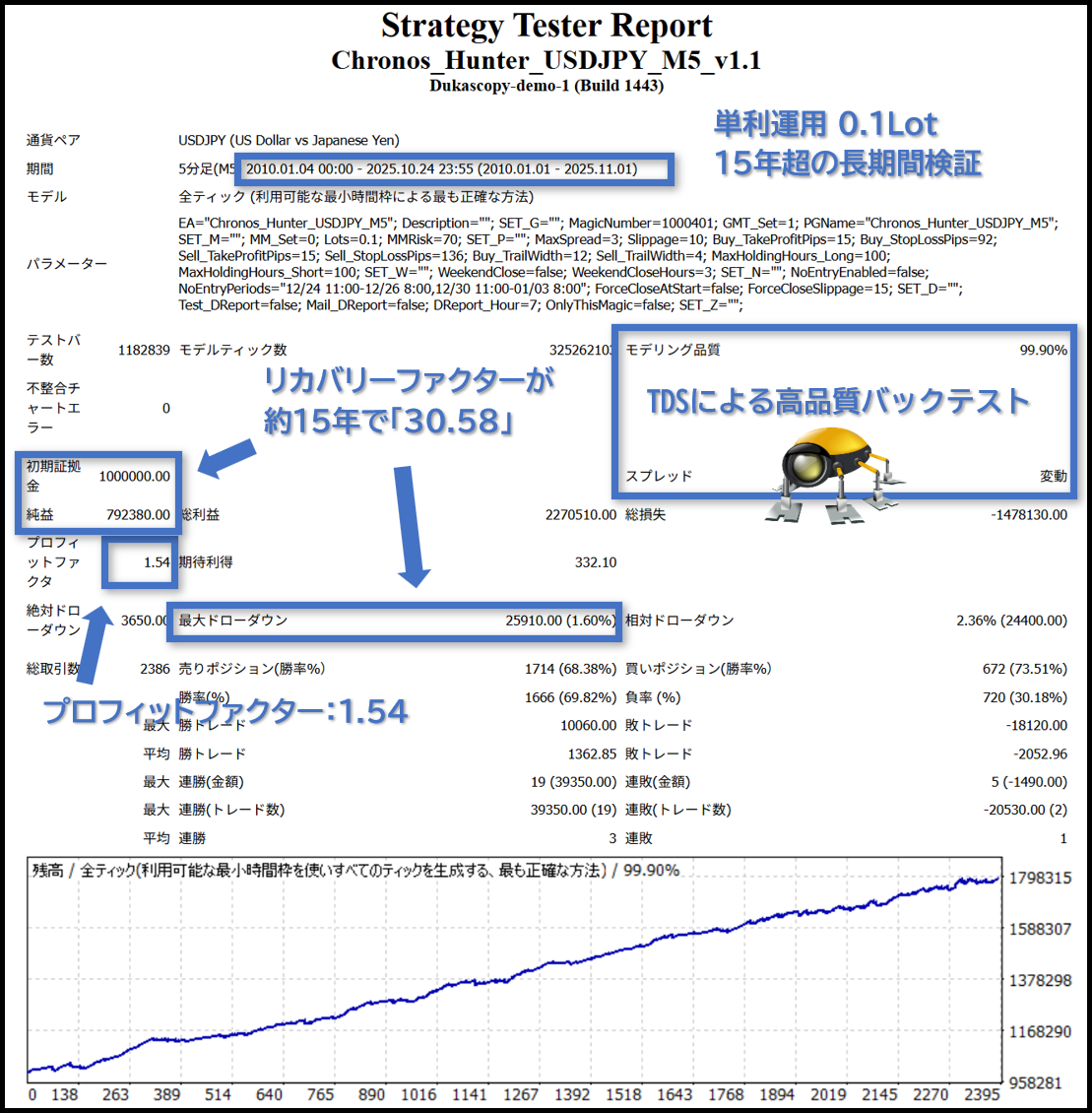 ・約15年10ヶ月のTDS全ティックによるバックテストを実施