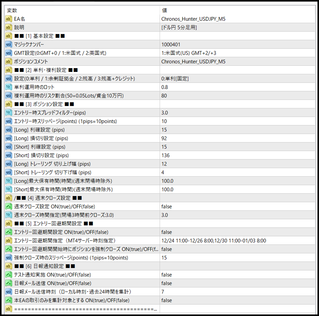 Increasing the lot size forcibly due to a high winning rate can, in rare instances, depending on the EA, lead to substantial Pips loss when a loss occurs. It is crucial to verify the SL Pips and the number of positions held before operating with an appropriate lot.
