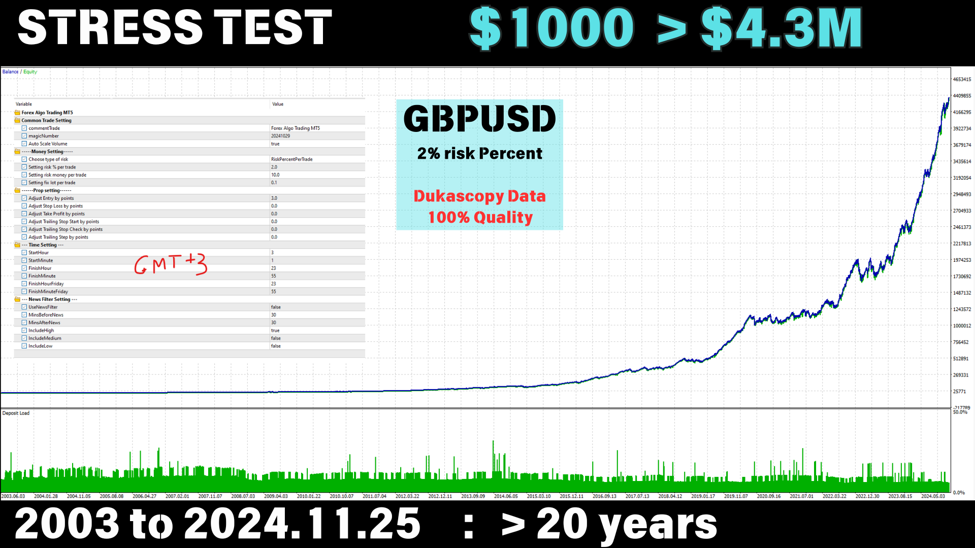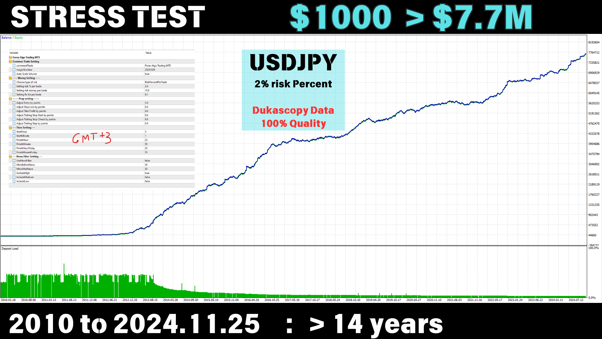 これは3つの通貨ペア、EURUSD、USDJPY、GBPUSD に対する、長期間にわたるバックテストの結果です。