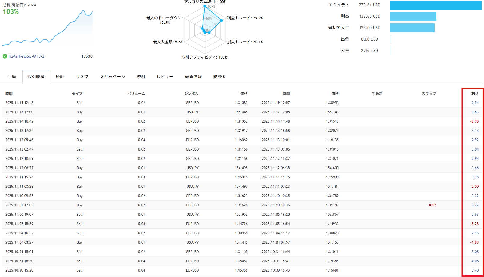 私はこのEAをライブ口座で1年以上稼働させ、正常に動作することを実証しました。
