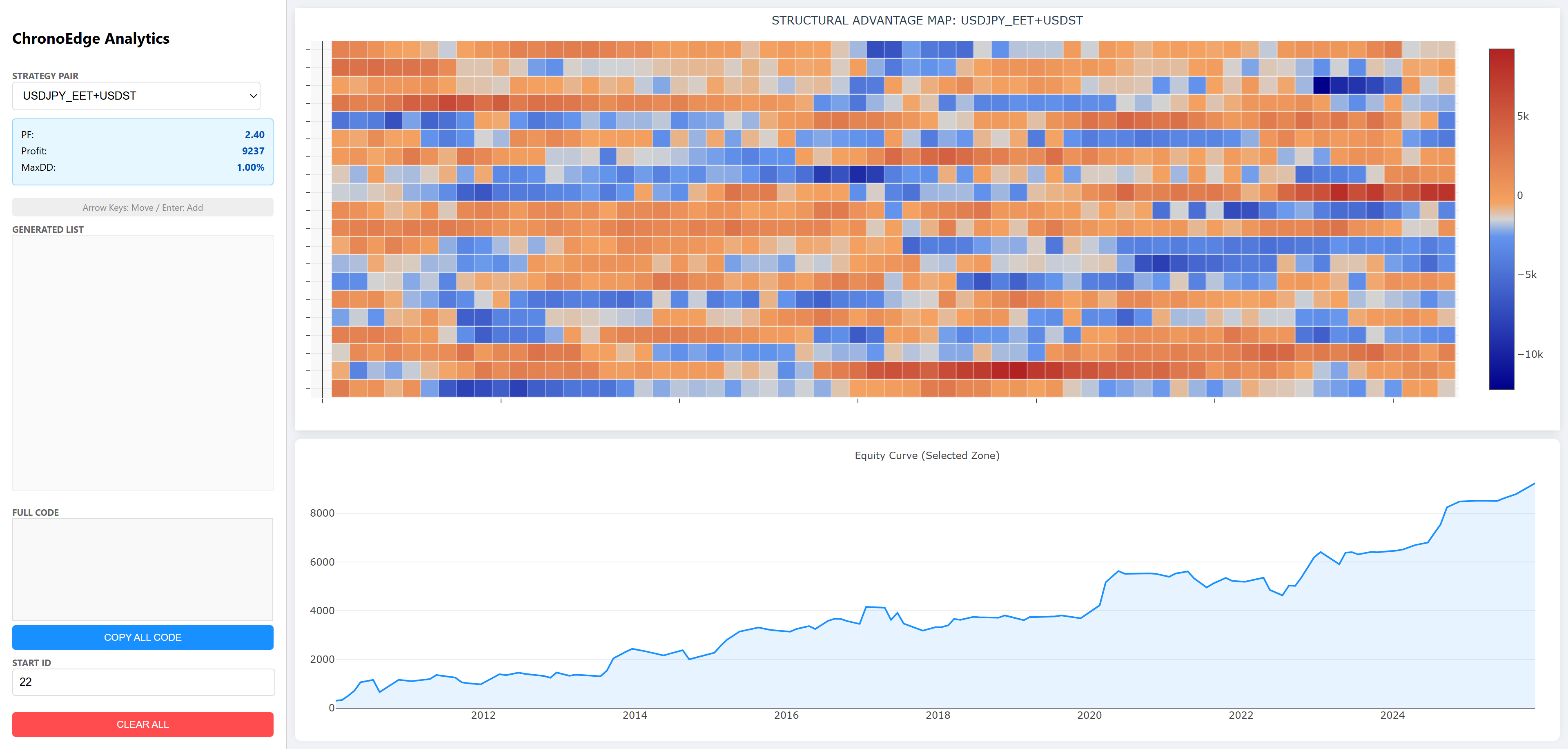過去15年以上(2010年~2025年11月)の膨大なマーケットデータから導き出された「時間構造的な優位性」を根拠に、よりアグレッシブに、かつ堅実に利益を積み上げることを目指します。