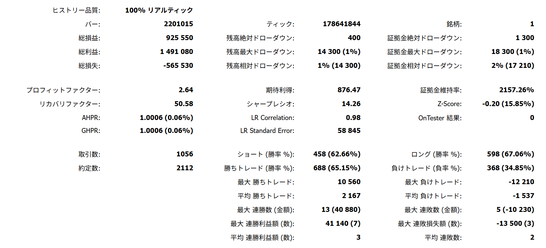 Tick Data Suiteを用いた変動スプレッド・スリッページ考慮のバックテストを実施。机上の空論ではない、リアル口座での再現性を重視した検証を行っています。