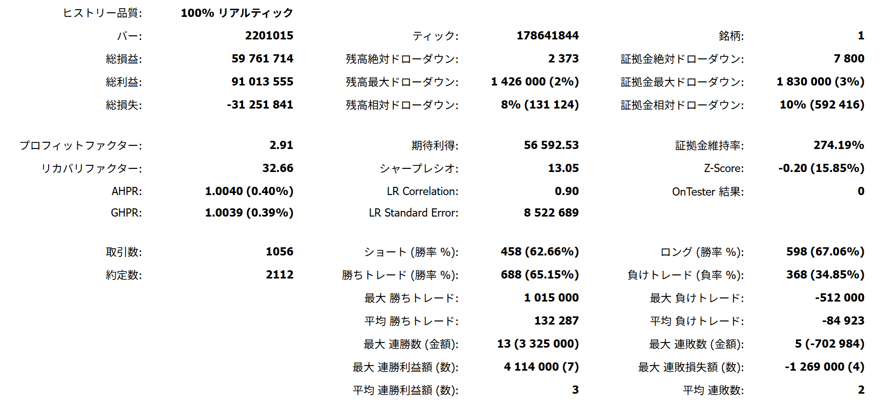 - 本EAは「将来を予測するツール」ではなく、過去の統計的優位性に資金を投じるシステムです。過去の成績は将来の利益を保証するものではありません。