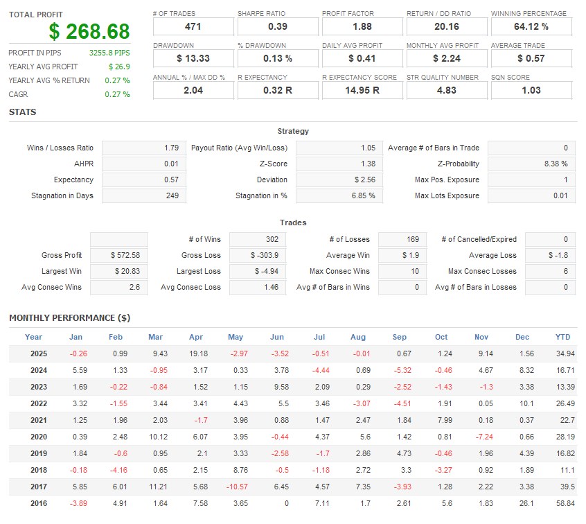 There is an absence of self-serving rule modifications, a common human tendency, such as increasing the lot size after consecutive losses in discretionary trading or, conversely, hastily securing profits with minimal gains.