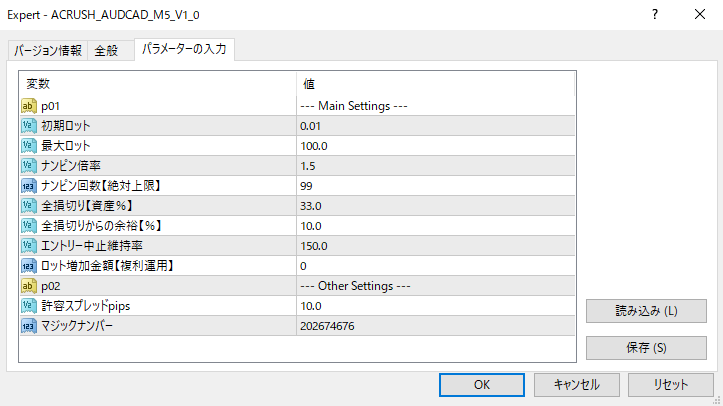 ※ 全損切【資産%】はパラメータで変更可能です。