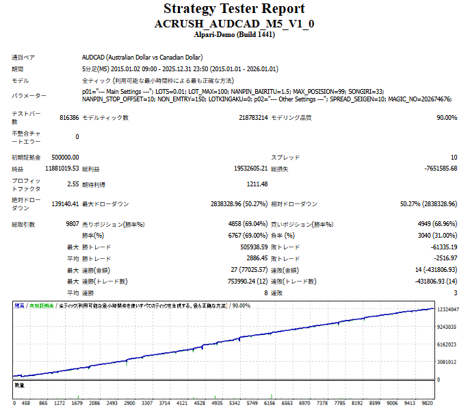※ 過去データによる検証結果であり、将来の利益を保証するものではありません。 EAの特性を把握するための参考情報です。