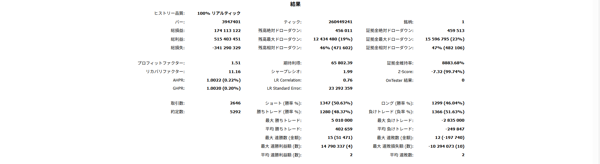 2015.01.01 ~ 2022.01.01 までバックテスト期間
