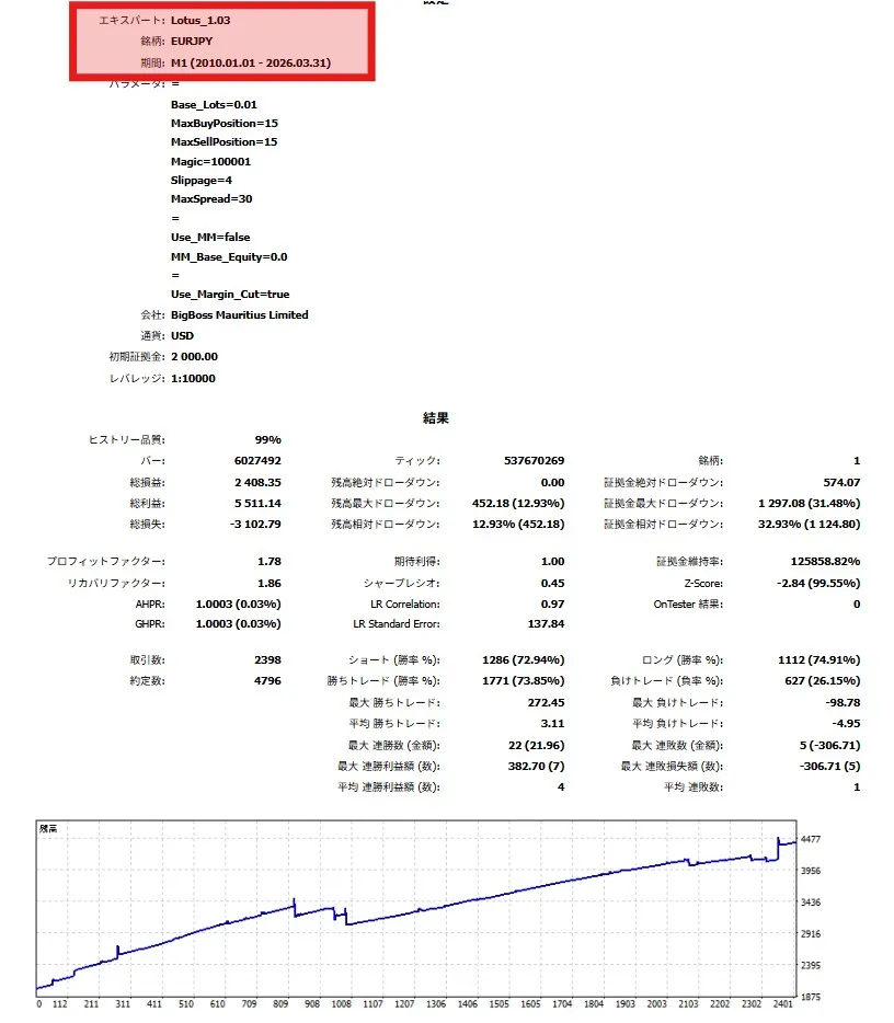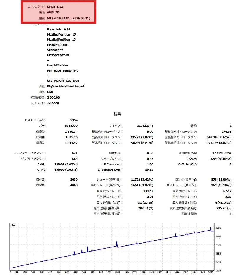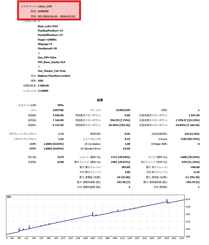 まずは、最も堅実な実績を持つ AUDJPY で、Lotusの「守りの強さ」を実感してください。