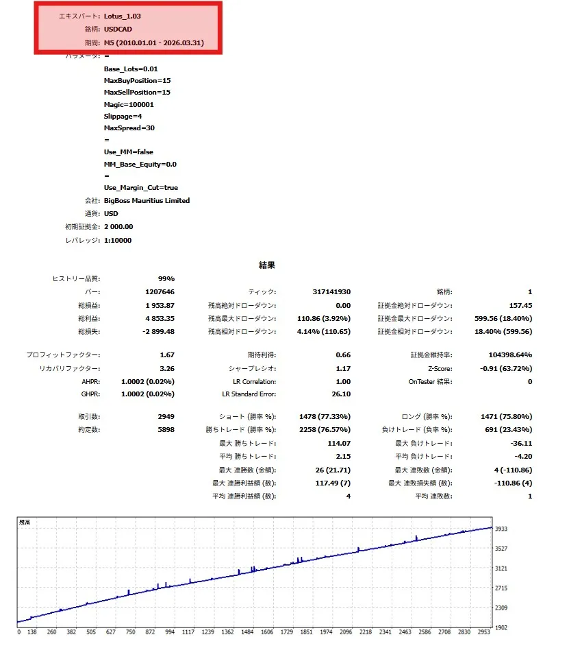 特徴: 比較的多い利益率と取引回数。Lotusのメインエンジンです。