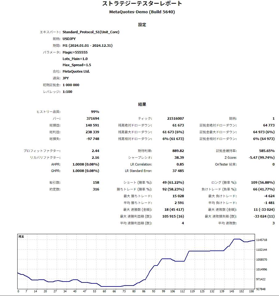 • 最大ドローダウン(DD):驚異の1.2% この「軸」があるからこそ、攻めのロジックを最大出力で運用することが可能になります。