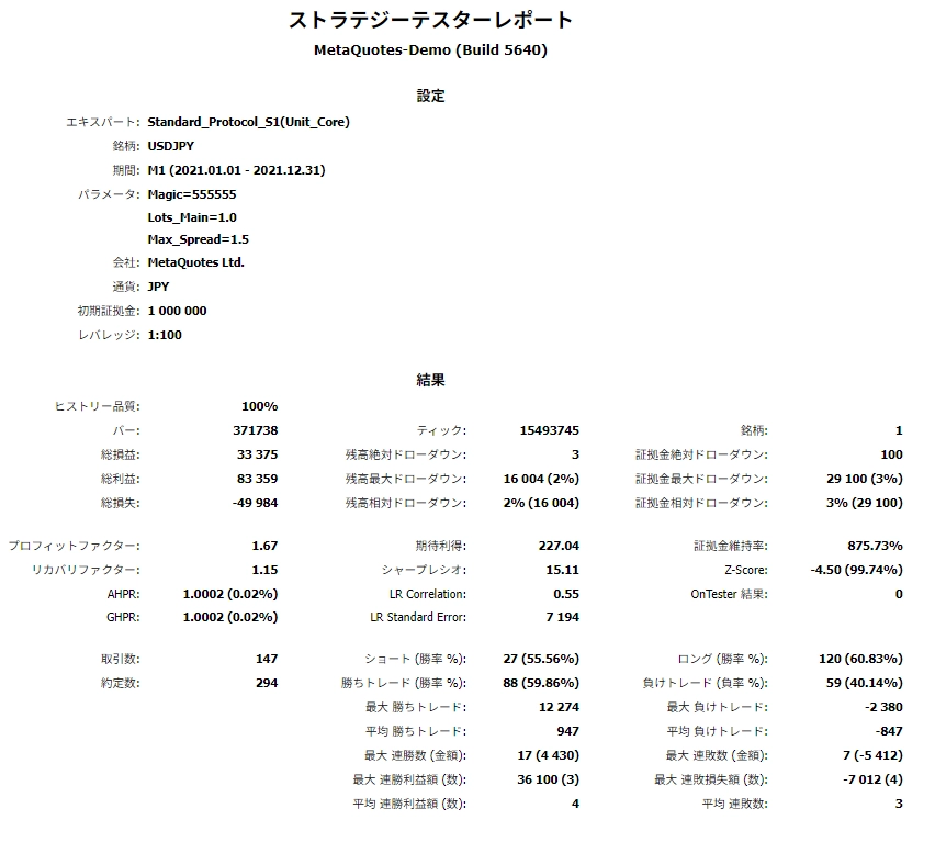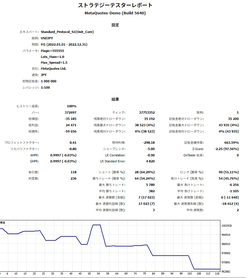 ◆驚異の資金防衛力:PFが悪化しても崩れない 2021年や2022年、相場状況により片方のPFが0.4まで悪化する局面がありました。通常のEAならここで破綻、あるいは大きな損失を残して退場です。 しかし本システムの真価はここからです。 対となるもう一つのロジックが相場を補完し、平均でのPFは1.0と1.6という驚異的な安定感を維持しました。 「調子が悪い時でも、致命傷を絶対に負わない。そして、2つを走らせることで期待値を引き上げる」。 これこそが、私が何よりも重要視しているシステムの真髄です。 ◆推奨環境 推奨業者: 外為ファイネスト、OANDA証券などの「国内低スプレッド業者」 推奨通貨ペア: USDJPY(ドル円) 注意: 海外業者や他通貨ペアでも動作はしますが、パフォーマンス維持のため国内「ドル円」での運用を強く推奨します。