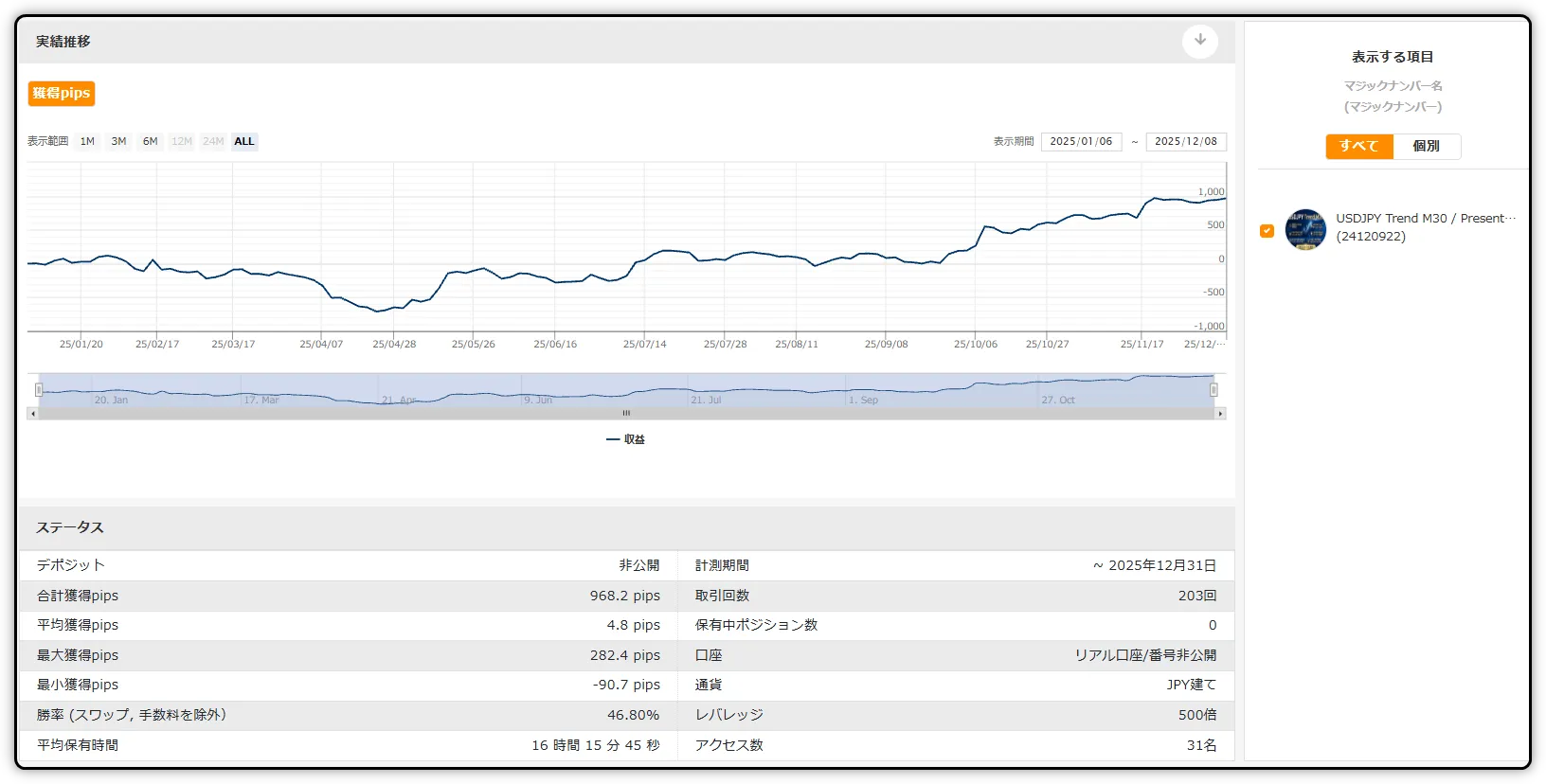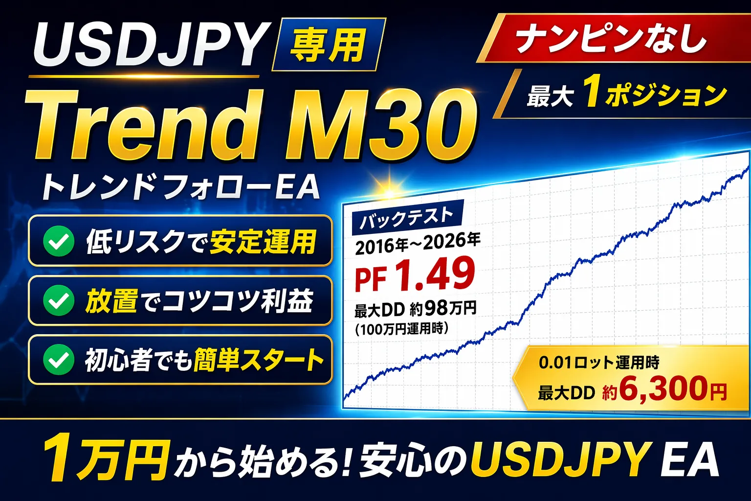 USDJPY Trend M30|ナンピンなしトレンドEA