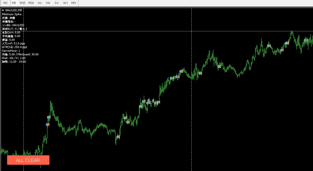 Minimum Spike GOLD は、GOLDの短期的な反発局面を狙うMT4専用EAです。