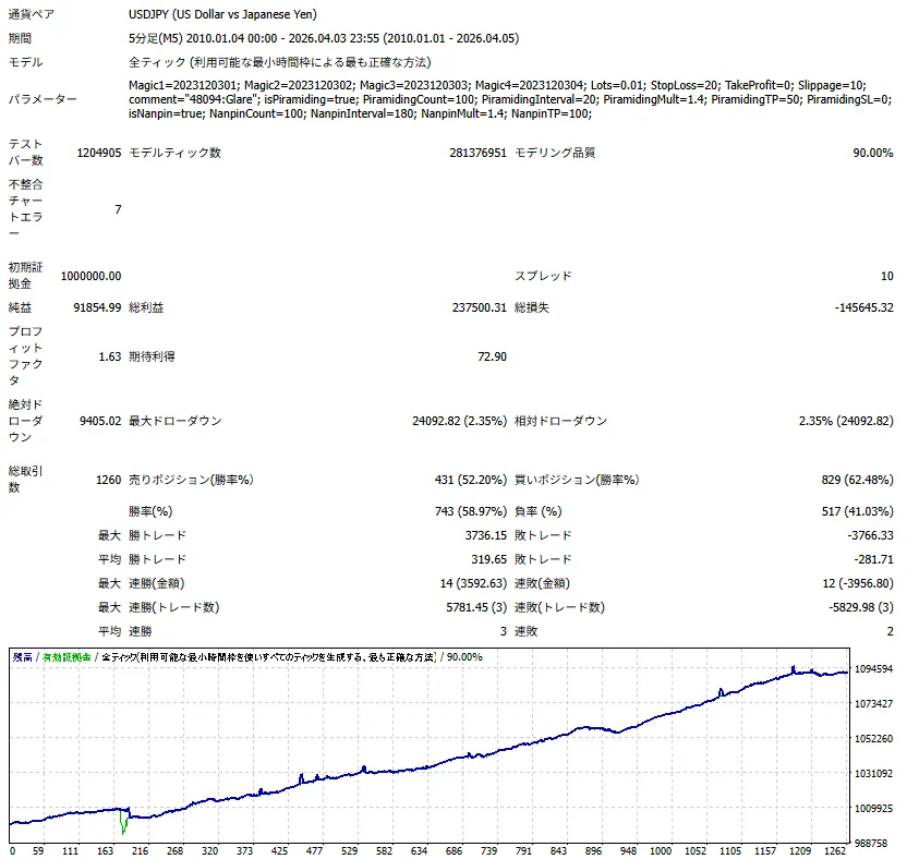このEAの、バックテスト結果は下記をご確認ください。