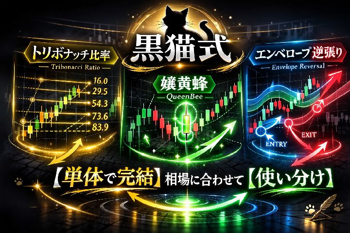 【新作公開】黒猫式・単体で使える裁量判断インジ3点セット(併用必須ではありません) こんにちは、黒猫です。 今回、新しいインジケーター3点セットを公開しました。 最初に1つだけ、はっきり言います。 【このセットは、...