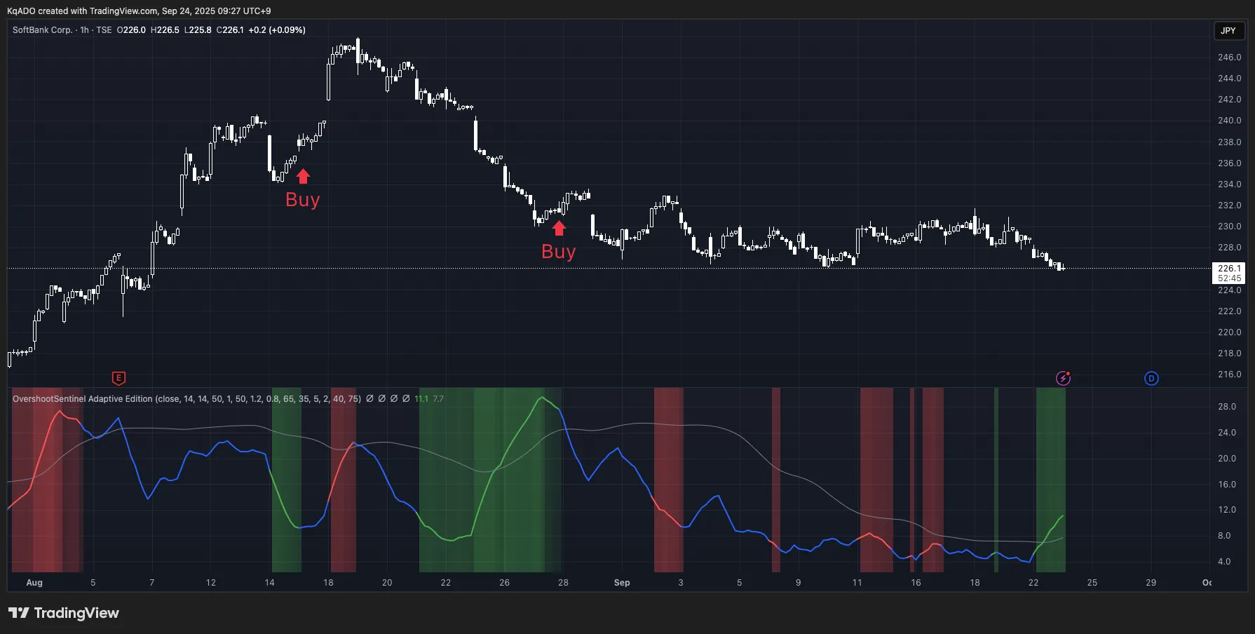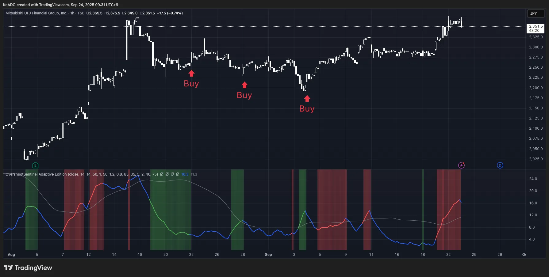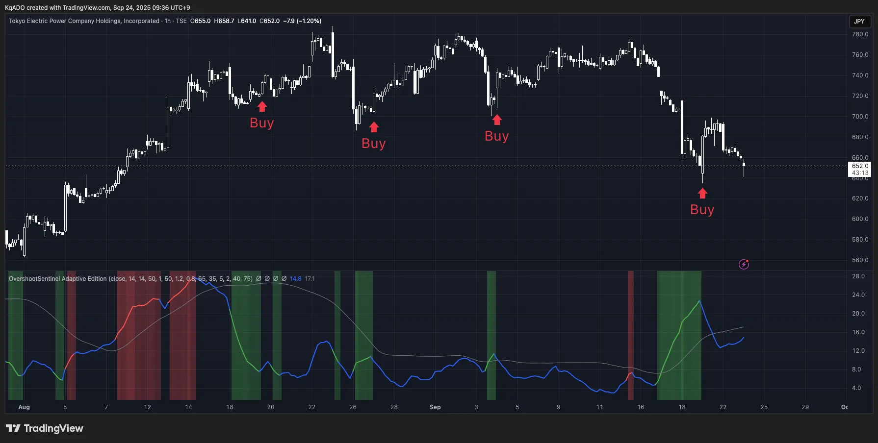 Overshoot Sentinel – Adaptive Editionคืออินดิเคเตอร์ที่ปรับเป้าหมายตามสภาพตลาด เพื่อให้จับ overshoot ได้อย่างตรงไปตรงมาและใช้งานได้จริงมากกว่า oscilla tor แบบเดิม