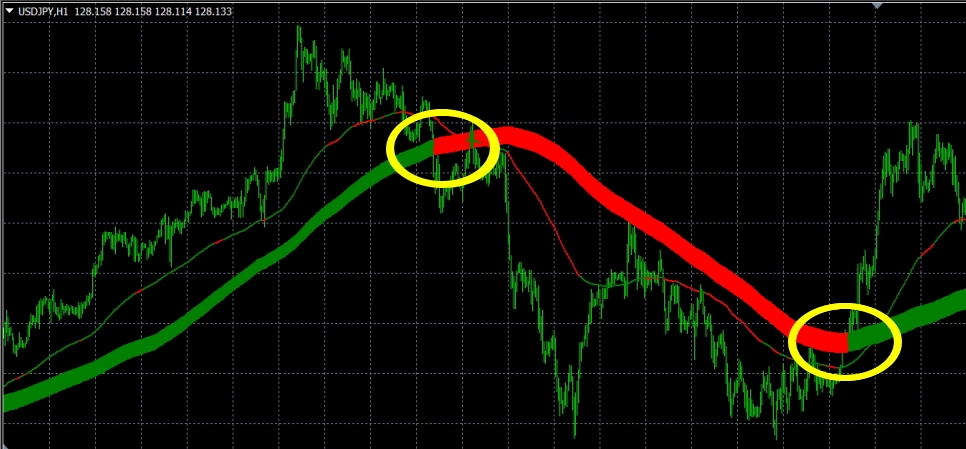 ด้วยเส้นแนวโน้มสองเส้น จะเป็นอินดิเคเตอร์ที่บอกจุดซื้อขายได้
