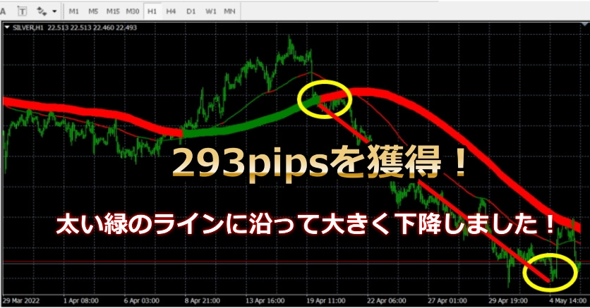 ตามเส้นเขียวหนาอย่างมากและสูงขึ้นอย่างมาก ทั้งได้293pipsมาได้