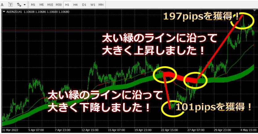ตามเส้นเขียวหนาอย่างมากและสูงขึ้นอย่างมาก และได้197pipsมาได้
