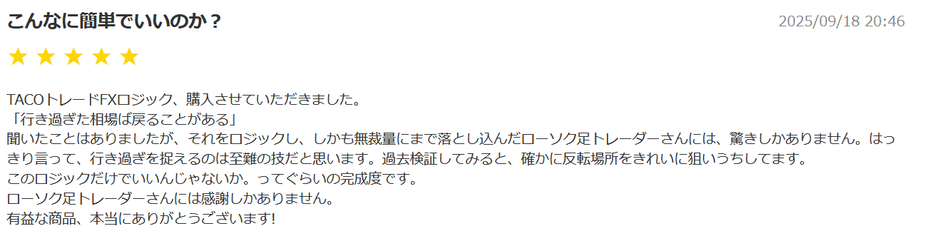 ตามคำกล่าวเหล่านี้,「TACO トレード FX ロジック」เป็นโลจิกที่