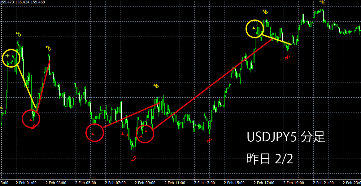 ในตลาดดอลลาร์/เยน มีช่วงที่ย้อนทิศทางบ้าง แต่จนกว่าจะมีสัญญาณ Sync ออกมา ก็ถือว่า「ต่อเนื่อง」ต่อไป