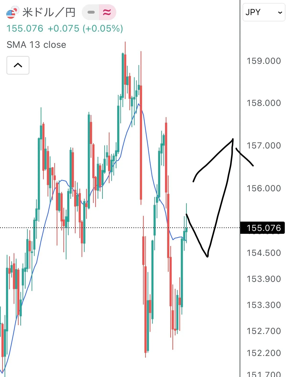 ✔ การกดลงลึก → ตระหนักในระดับราคา 154 เยนในช่วงกลาง