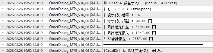 【2026/2/26】FX GridEAการใช้งานจริง|ต่อสู้กับจุดอ่อนของกรอบแนวขยายและรักษา『+2,357円』