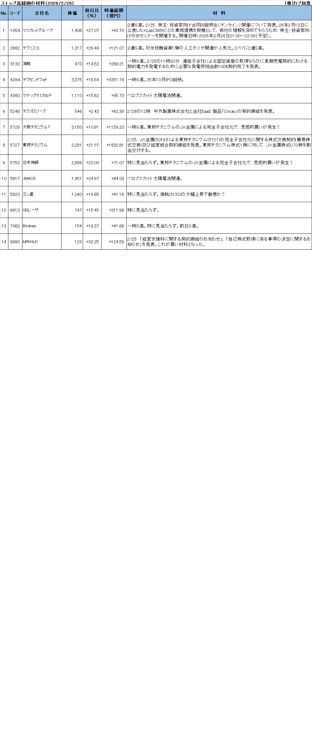 เผยแพร่ความรู้กับหัวข้อ材料สินค้าพิเศษที่ปรับขึ้นสูงสุด (2026/02/26)