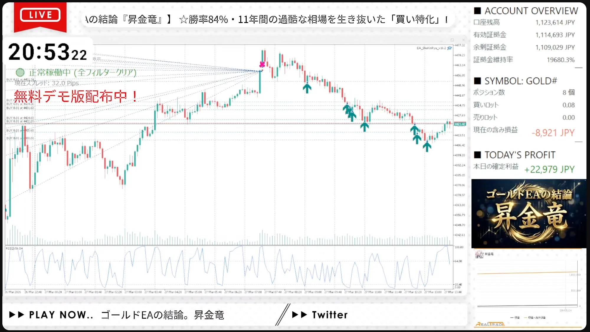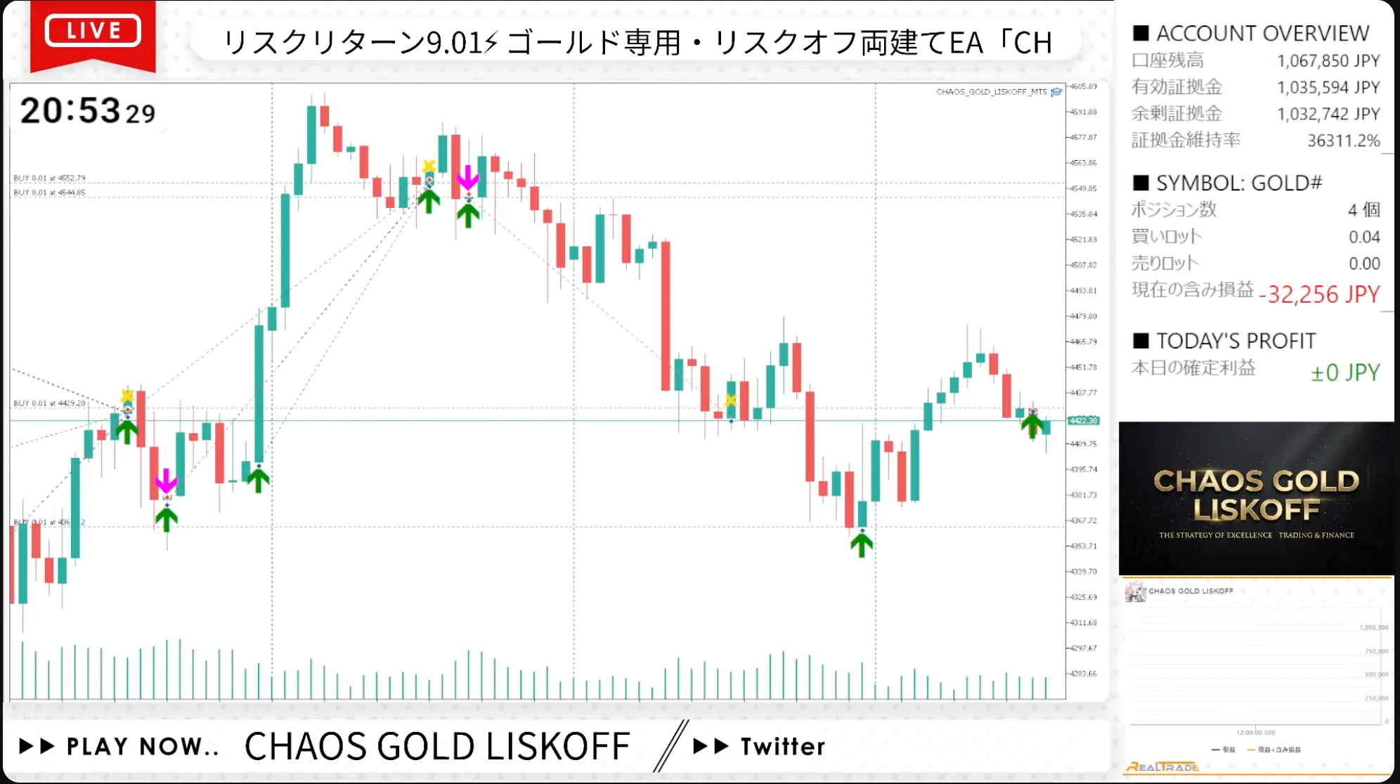ผมเผยแพร่การซื้อขายทั้งหมดของ昇金竜และ CHAOS_GOLD ผ่าน YouTube ไลฟ์ 24 ชั่วโมงแบบเรียลไทม์ ทั้งการขาดทุนและการลดลงถูกเผยแพร่ทั้งหมด