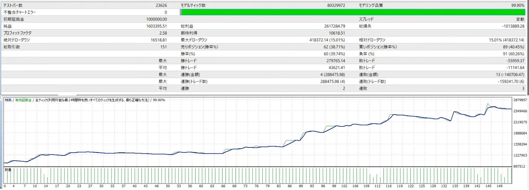 PF 2.58และ最大DD 15.01%ความสมดุลนั้นถูกประเมินว่ายอดเยี่ยมมาก