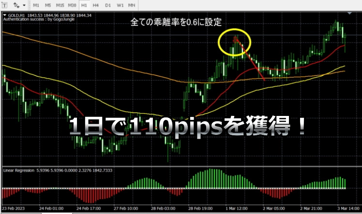 ทองคำได้ถึง 110 pips (110,000円) ในหนึ่งวัน! ตัวชี้วัด FX ที่จับจุดล่างสุดและบนสุดด้วยจังหวะที่ลงตัวด้วย “แนวรับแนวต้าน”【ผลงานวันที่ 4 มีนาคม 2023】