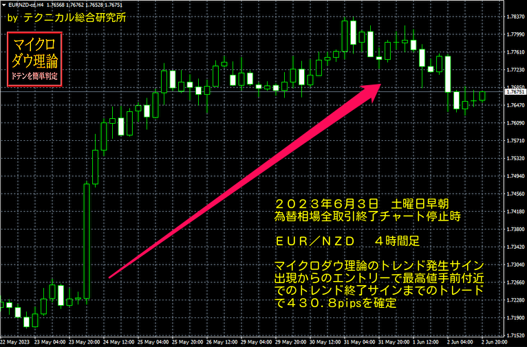 このマイクロダウ理論のロジックは相場の上げ下げのタイミングとトレンドの継続確認の方法を記述したものです