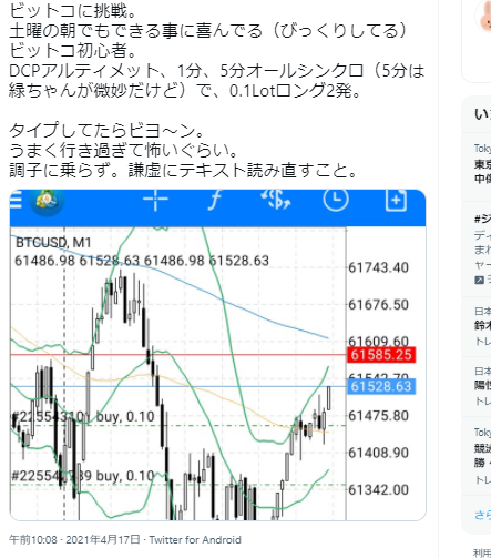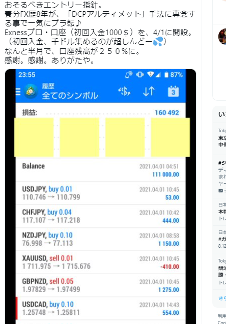 先行販売より1年間、多くの方々の驚きの元、以下のような反響やお礼のDMを100件以上頂きました。 2021-04-01_15h18_36 報告1.png 2021-04-01_15h58_07 報告2.png そのDCP(オリジナル)に、さらに、オシレーター2種3本を加え、反転予測・環境認識・エントリー、イグジットタイミングに加え、エントリーしない方がいい状態までを、信じられないほどの精度で可視化しながら、
