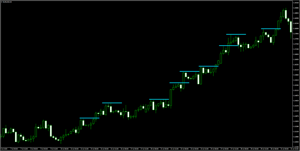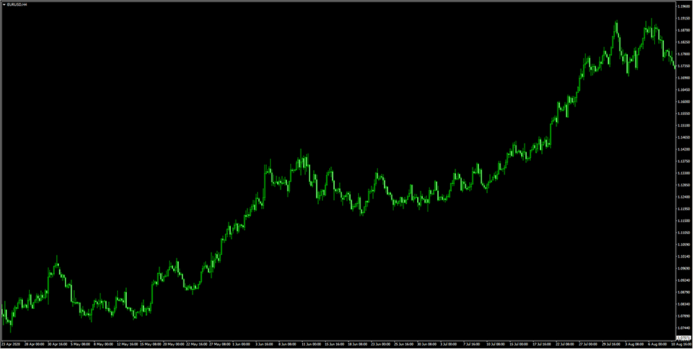 これはEURUSDの4時間足チャートです。誰が見てもわかりますが上昇トレンドです。
