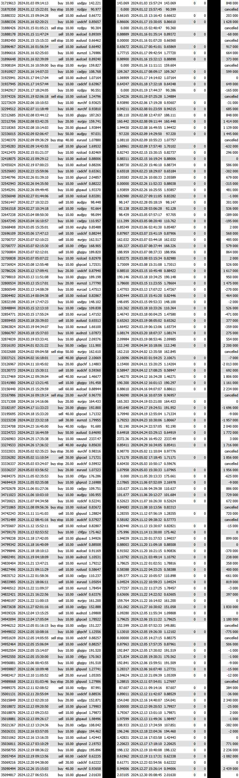 ブログ「かんたんFX」ではブログ開設から今日現在まで5年以上に渡るリアルトレードの取引履歴を全て公開していますが、ここにそれを全て掲載すると非常に長くなるので昨年2024年の取引履歴を掲載します。もちろん全てのトレードはブレイクアウトトレード手法BOSSを使用しています。※履歴で数か月単位でトレードしていない期間は本業やプライベートが忙しくてトレードを休止していた為です。
