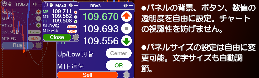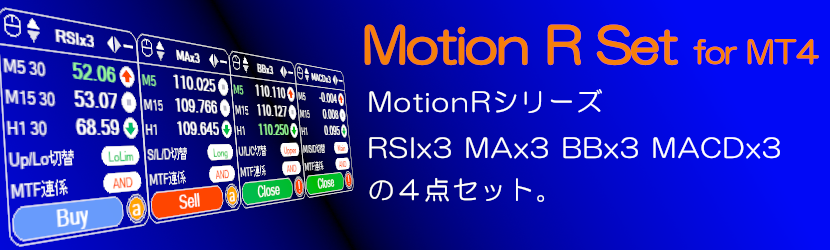 MT4版 マルチタイムフレームインジケーターMotionRシリーズ(BBx3,MAx3,RSIx3,MACDx3)のセット商品。
