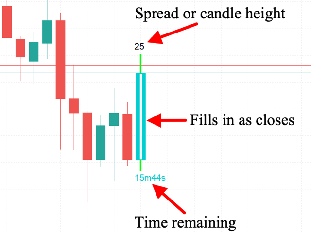Add real-time figures above the active candle. Choose from other displays like price movement, candle height, spread, and more.