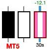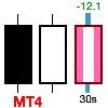 他のローソクと違う色にすることで一目で未確定だと判別できます。ヒゲを太くするも出来ます。