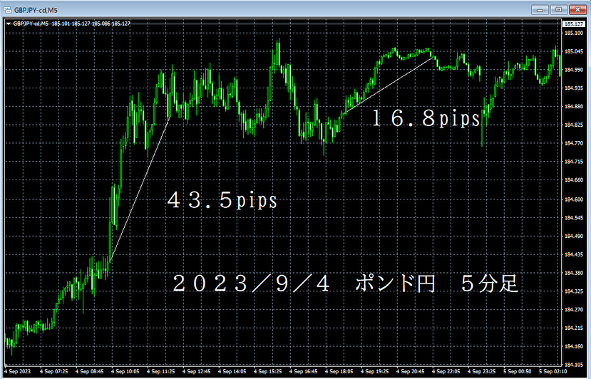 言い換えればこのトレンドの発射台ポイントを1分足や5分足などの短期足がブレイクすることでトレンドが発生し、それはやがて中長期足を動かすことにもなるということになります