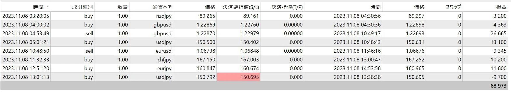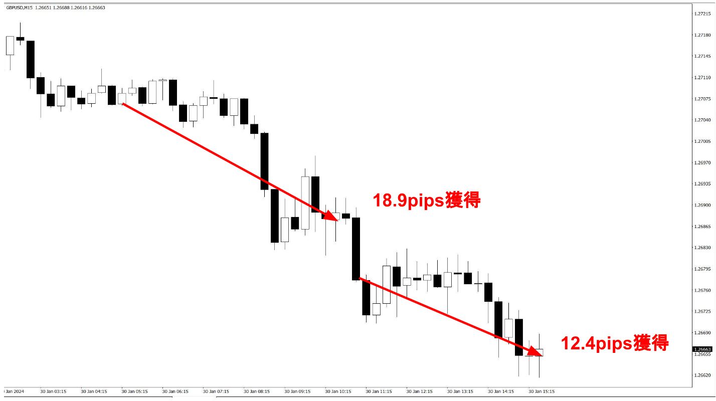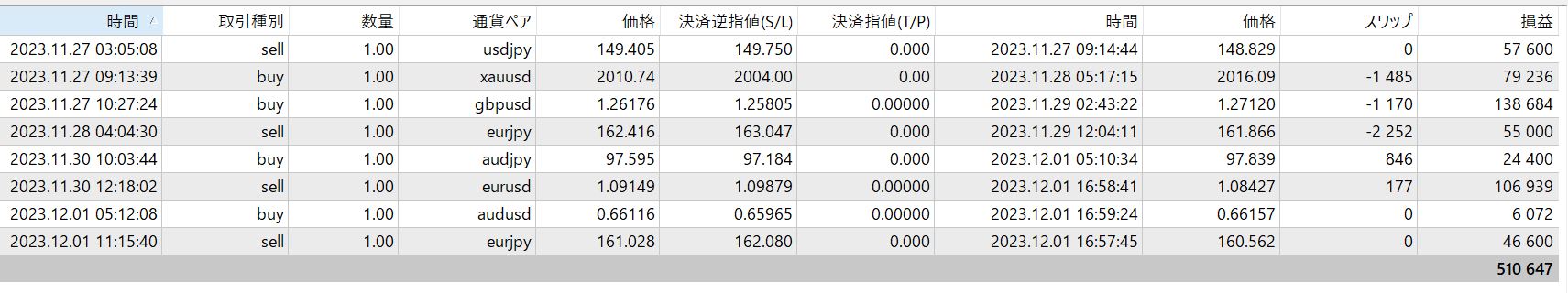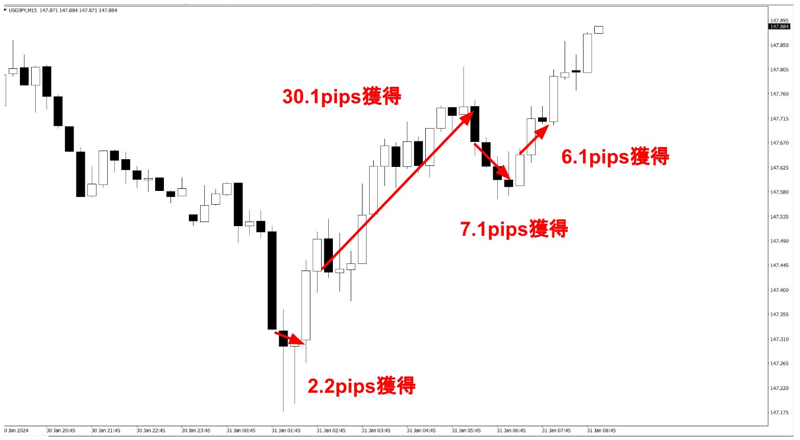 それでは、今回のロジックでどのようなトレードが可能なのか