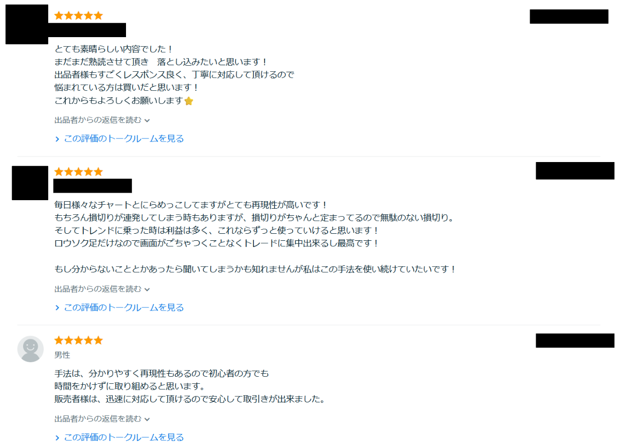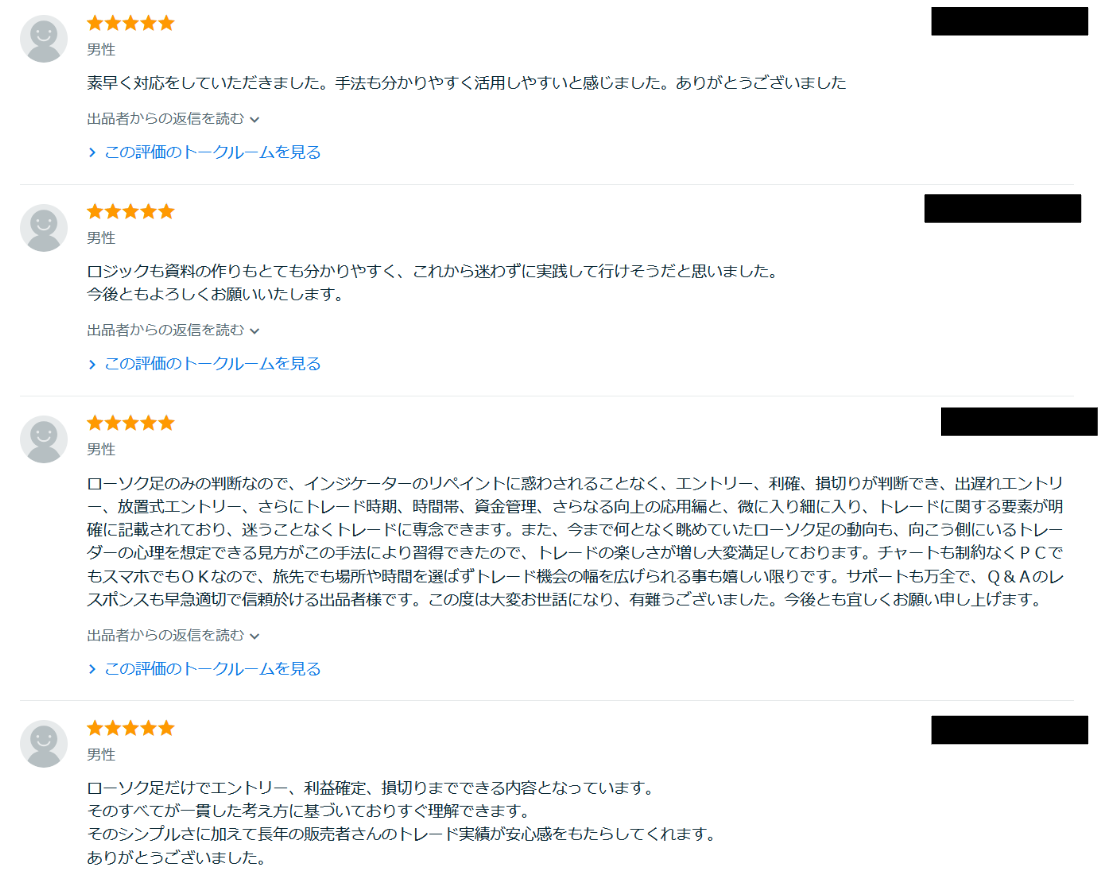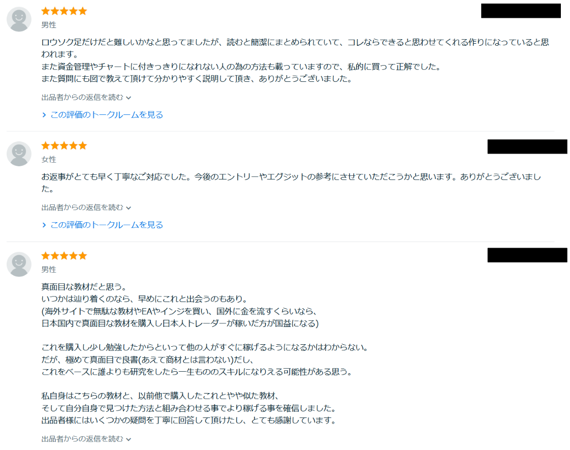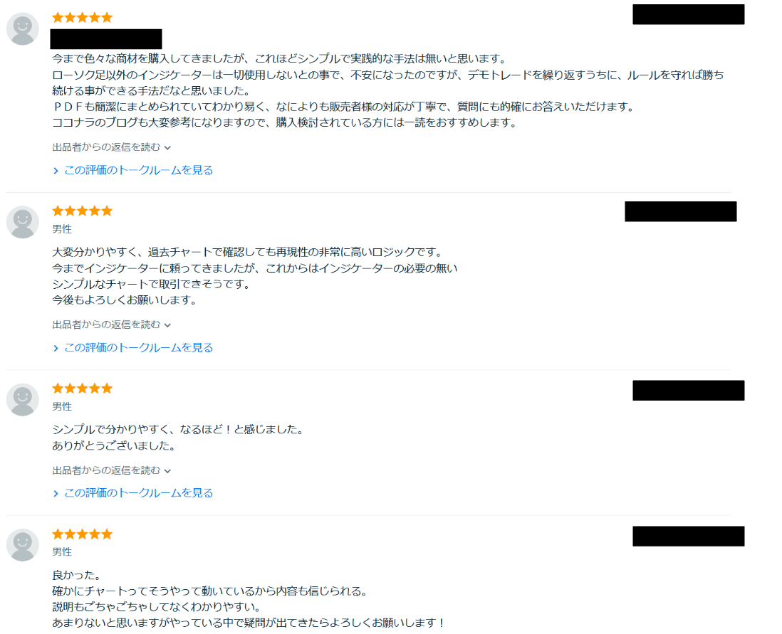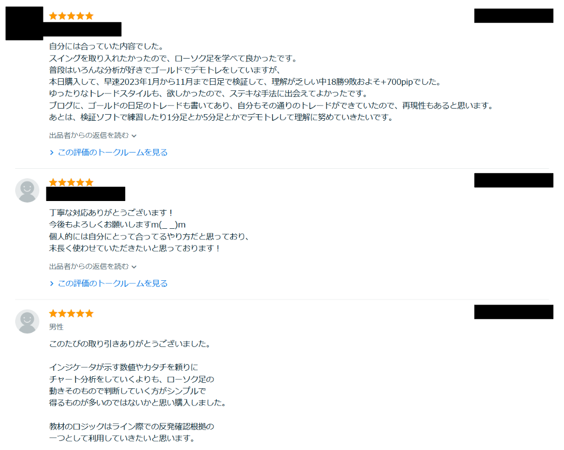先に今回の「ローソク足FXロジック」をお手に入れた方からの