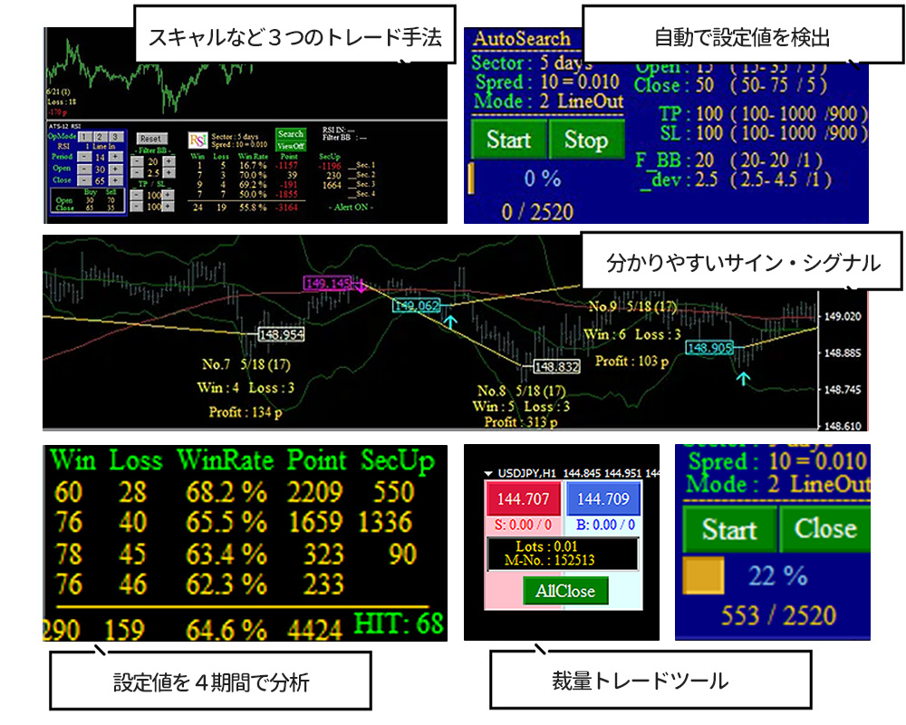 ATS-BASEでは、独自の取引手法とデータを活用してトレーダーの利益向上をお手伝いさせて頂いております。以下に、現在の主な活動内容をまとめました。
