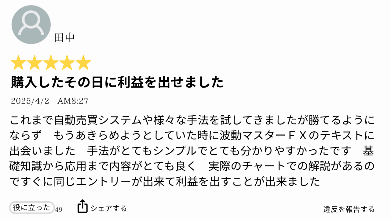 ですが、私がお伝えした衝撃的な真実から目をそらさずに、『正しい知識を手にして、正しい努力をして、FXで利益を出したい!』という強い思いがある同志(仲間)の方は、是非この電子書籍を手に取ってみてください。