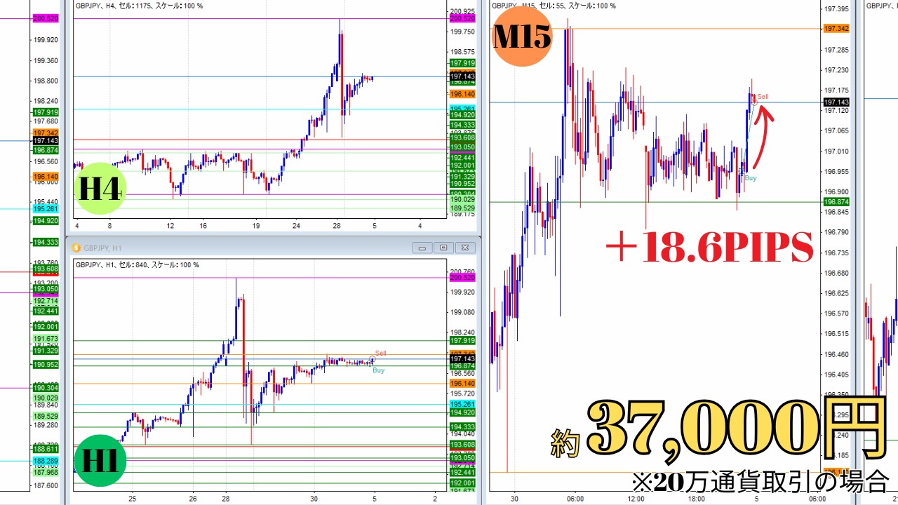 ✅波動マスターFXがどこで売り買いを狙っているのかリアルタイムで明確に分かります。