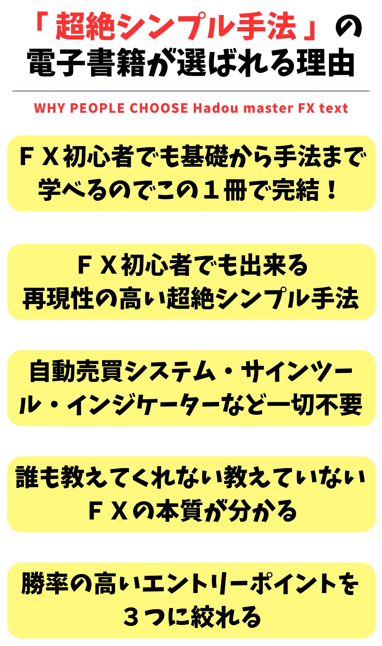 同志の方々が私と同じように時間とお金を無駄にしないようにFX初心者でも使える『超絶シンプル手法』の電子書籍を作成させていただきました。
