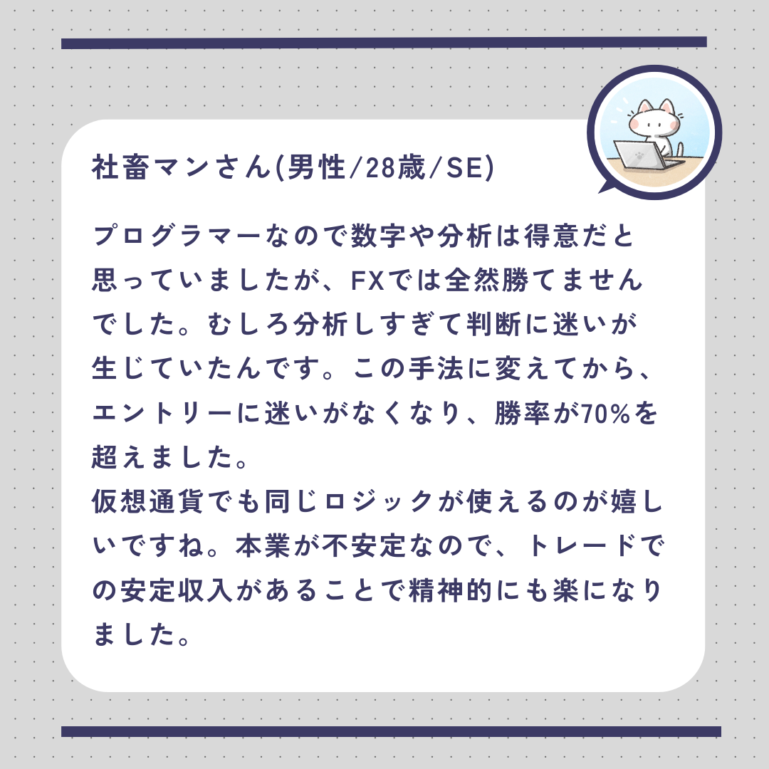 勝ち組トレーダーになるお手伝いをしたりしました。
