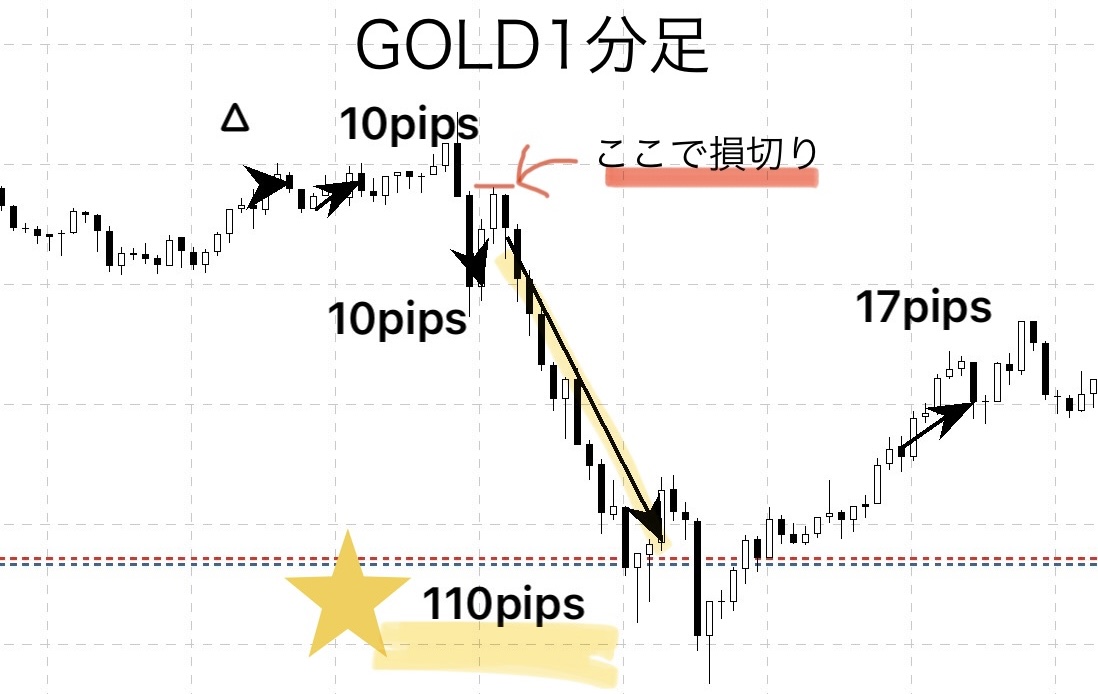 5️⃣ 損切りライン突破 → 次足始値で損切り