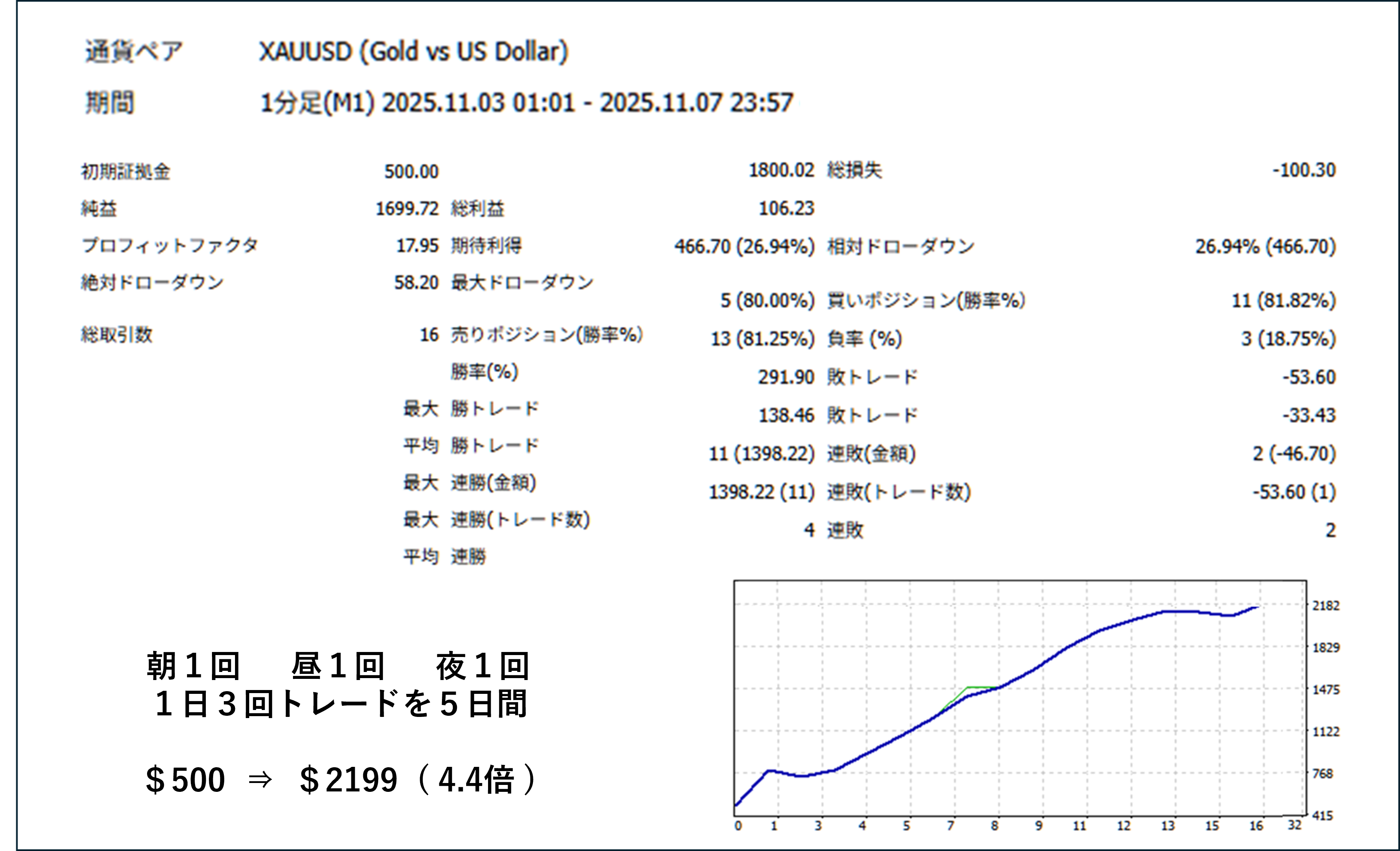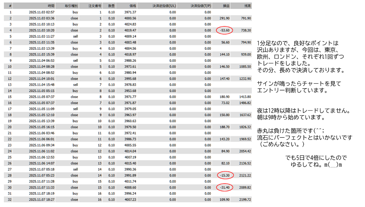 【1分足トレード】 固定ロット0.1 稼働5日 トレード回数16回