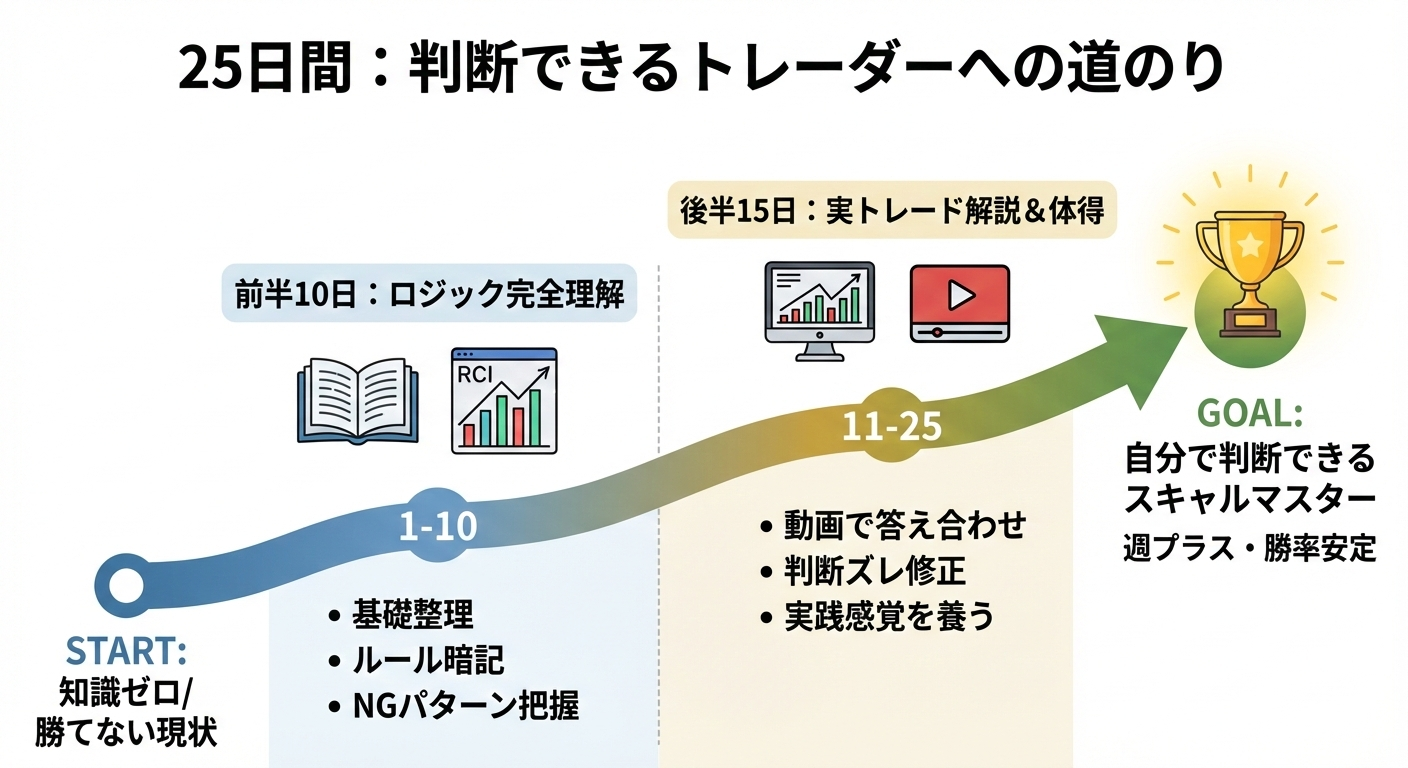 あなたが『新先読みRCIスキャルマスター』にチャレンジするという決断をしたのなら、あなたが最後までこの取り組みを全うできるようにするためにMaxは責任をもってサポートします。 もしも学習の途中で迷いや疑問が生じたら、いつでも相談をしてきてもらいたいと思います。